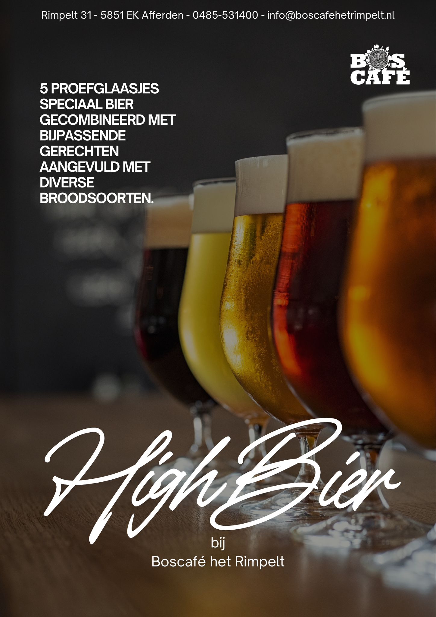 Gelegen in het prachtige natuurgebied de Maasduinen, is Boscafé 't Rimpelt de perfecte tussenstop voor fietsers, wandelaars en levensgenieters. Hier kun je ontspannen en genieten van een heerlijk kopje koffie met vers gebak, een uitgebreide lunch of een gezellige High Tea. In de avond verwelkomen we je graag voor een smaakvol diner à la carte, een gezellige Sharing Dinner of een High Wine & High Beer ervaring.